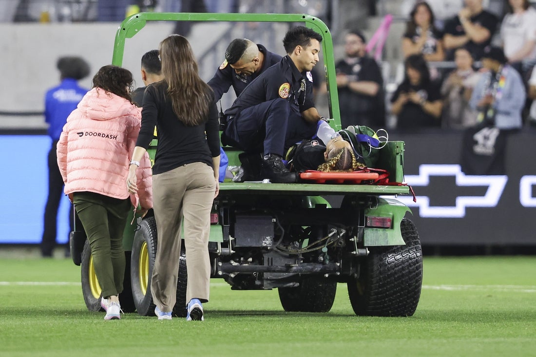 Angel City assistant coach Eleri Earnshaw said following the team’s 2-0 victory, “Her family is with her, as is our medical staff, so she’s in good hands.”