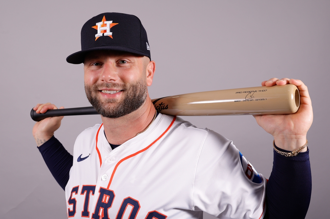 Feb 20, 2025; West Palm Beach, FL, USA; Houston Astros first base Christian Walker (8) poses for a photo at the Houston Astros media day. Mandatory Credit: Reinhold Matay-Imagn Images