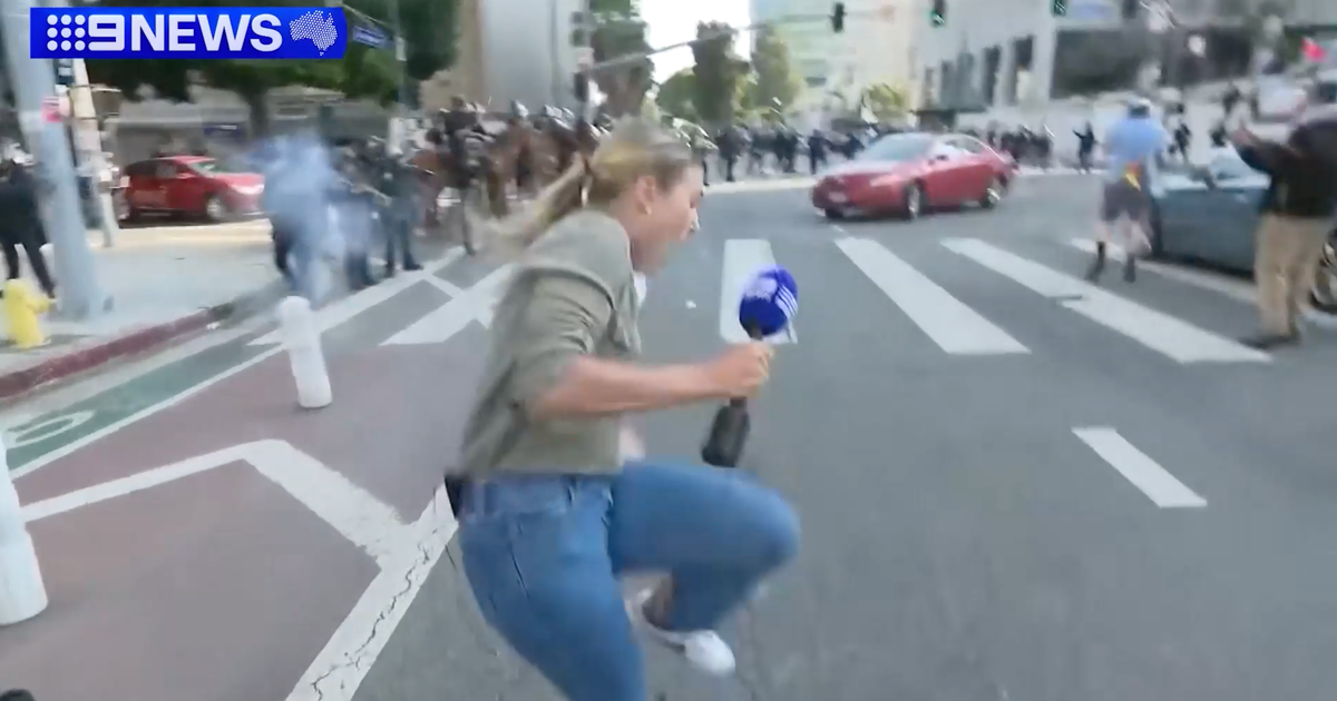 An Australian television journalist reporting live from downtown Los Angeles amid the large-scale protests over President Trump’s immigration crackdown was hit in the leg by a rubber bullet, her network said.