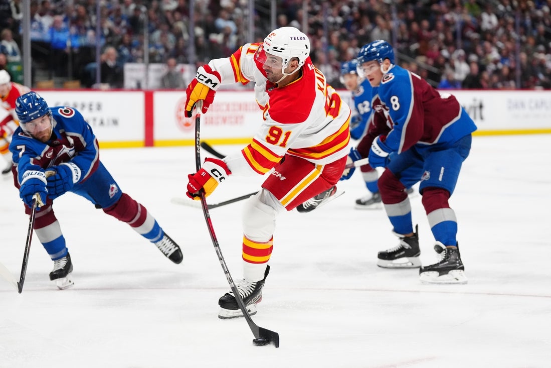 The Avalanche added to their lead in the second period. Calgary turned the puck over in its own end, and Parker Kelly sent it to O’Connor in the left circle. O’Connor carried the puck through the slot and slid it just under Vladar’s left skate and inside the post at 7:59.