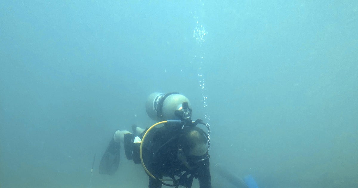 Marine archaeologist and research professor David Gregory from the National Museum of Denmark at piled bricks on the seabed in Costa Rica.