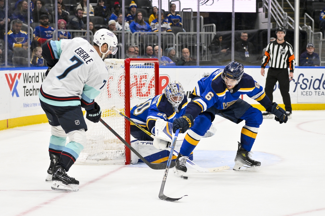 On Tuesday, Seattle fell behind by seven goals to St. Louis before former Blues players Vince Dunn and Jaden Schwartz scored in the third period of the 7-2 rout.