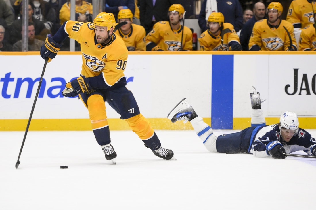 First-period goals by Filip Forsberg and Tommy Novak held up as the host Nashville Predators snapped the Winnipeg Jets’ 11-game winning streak with a 2-1 victory on Thursday.