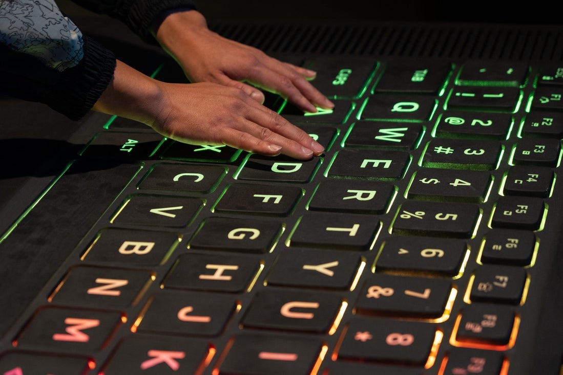 A Counter-Strike fan plays the esports game on an oversized gaming laptop at the Counter-Strike Austin Major launch event at The Moody Center Wednesday, Feb. 12, 2025. Austin will be the host city for the Counter-Strike Austin Major esports tournament in June 2025.