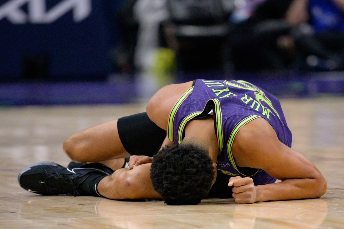In the first minute of the game, Detroit’s Ausar Thompson stole the ball from Murphy, and the two collided as Thompson headed toward the opposite basket. Murphy went down to the floor in pain and left the contest for good.