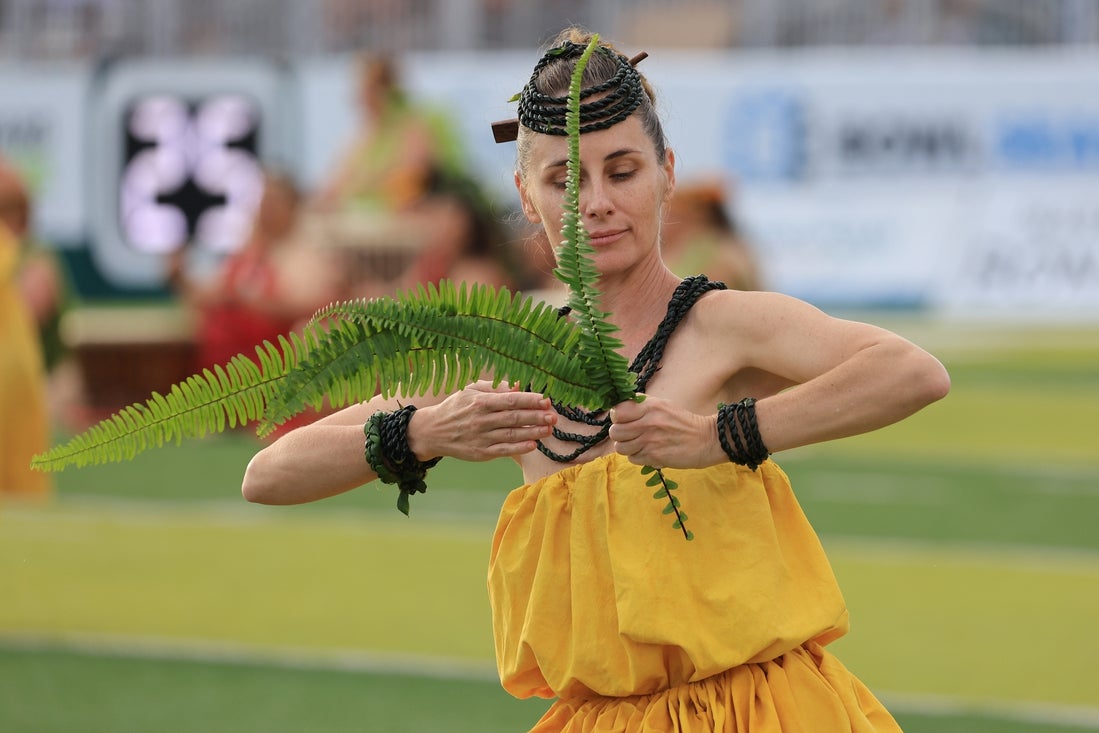 Dec 24, 2024; Honolulu, HI, USA; Dancers perform a Polynesian dance during half time at the Hawaii Bowl between South Florida and San Jose State held at Clarence T.C. Ching Athletics Complex. Mandatory Credit: Marco Garcia-Imagn Images