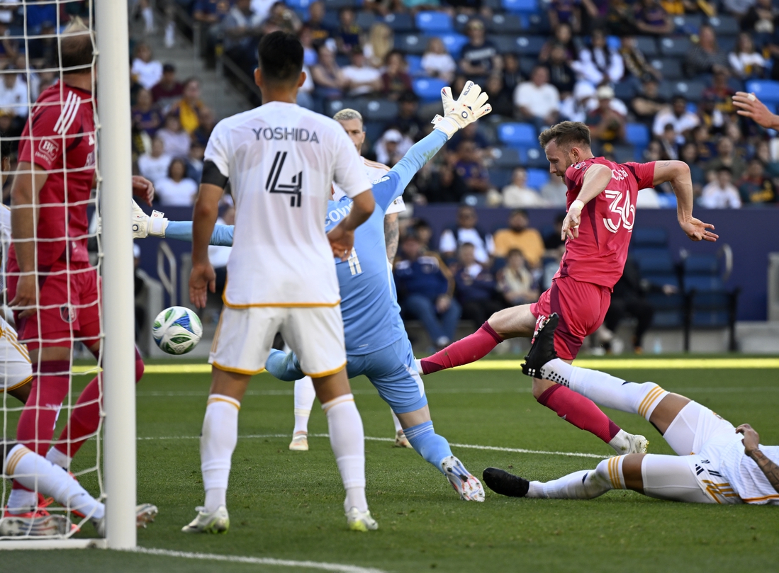 Again, the Galaxy just missed scoring a goal in the 83rd minute when Gabriel Pec’s shot from well outside of the penalty area went just over the crossbar. St. Louis City countered immediately as Becher scored in transition less than a minute later off a lead pass from Kyle Hiebert.