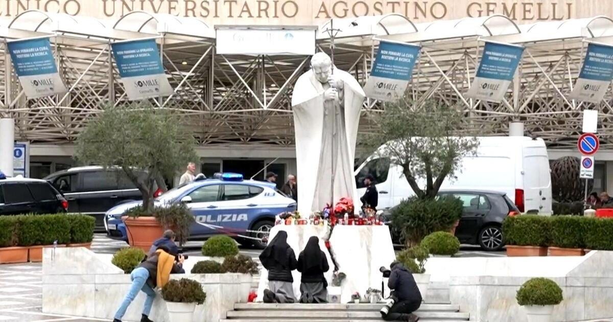 Romans gathered again outside Gemelli Hospital, placing flowers and candles and offering prayers for Pope Francis. The pontiff has been in the hospital nearly a week with pneumonia. Seth Doane reports.