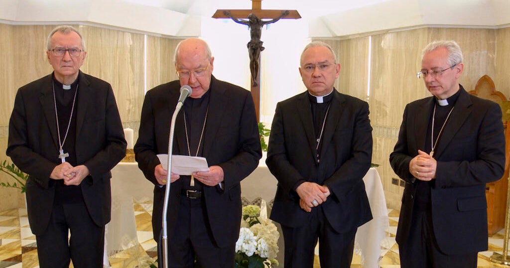Cardinal Kevin Farrell, the Vatican camerlengo, read the announcement of the pope’s death from the chapel of the Domus Santa Marta, where Francis lives. He was accompanied by Cardinal Pietro Parolin, the Vatican secretary of state, Archbishop Edgar Peña Parra, substitute chief of staff and Archbishop Diego Ravelli, master of liturgical ceremonies.