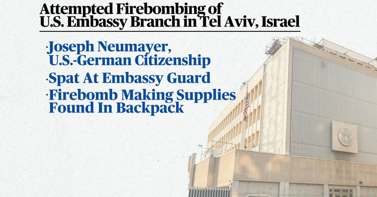 A U.S.-German citizen was arrested at JFK airport for allegedly trying to firebomb the U.S. embassy in Tel Aviv.