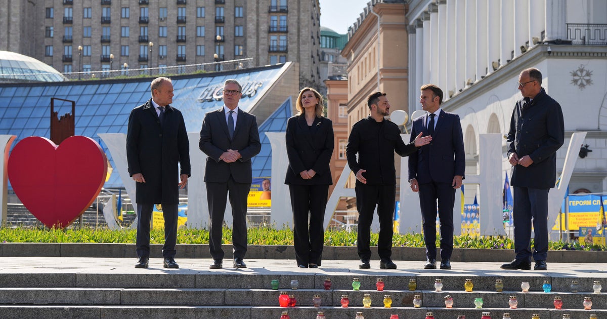 The leaders of France, Germany, Poland and the United Kingdom arrived together at the train station in Kyiv, and met Zelenskyy shortly after to join a ceremony at Kyiv’s Independence Square marking the 80th anniversary of the end of World War II. They lit candles at a makeshift flag memorial for fallen Ukrainian soldiers and civilians.