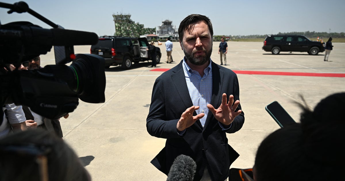 Vice President JD Vance speaks before his departure from Agra, India, April 23, 2025, following a tour to the Taj Mahal with his family.